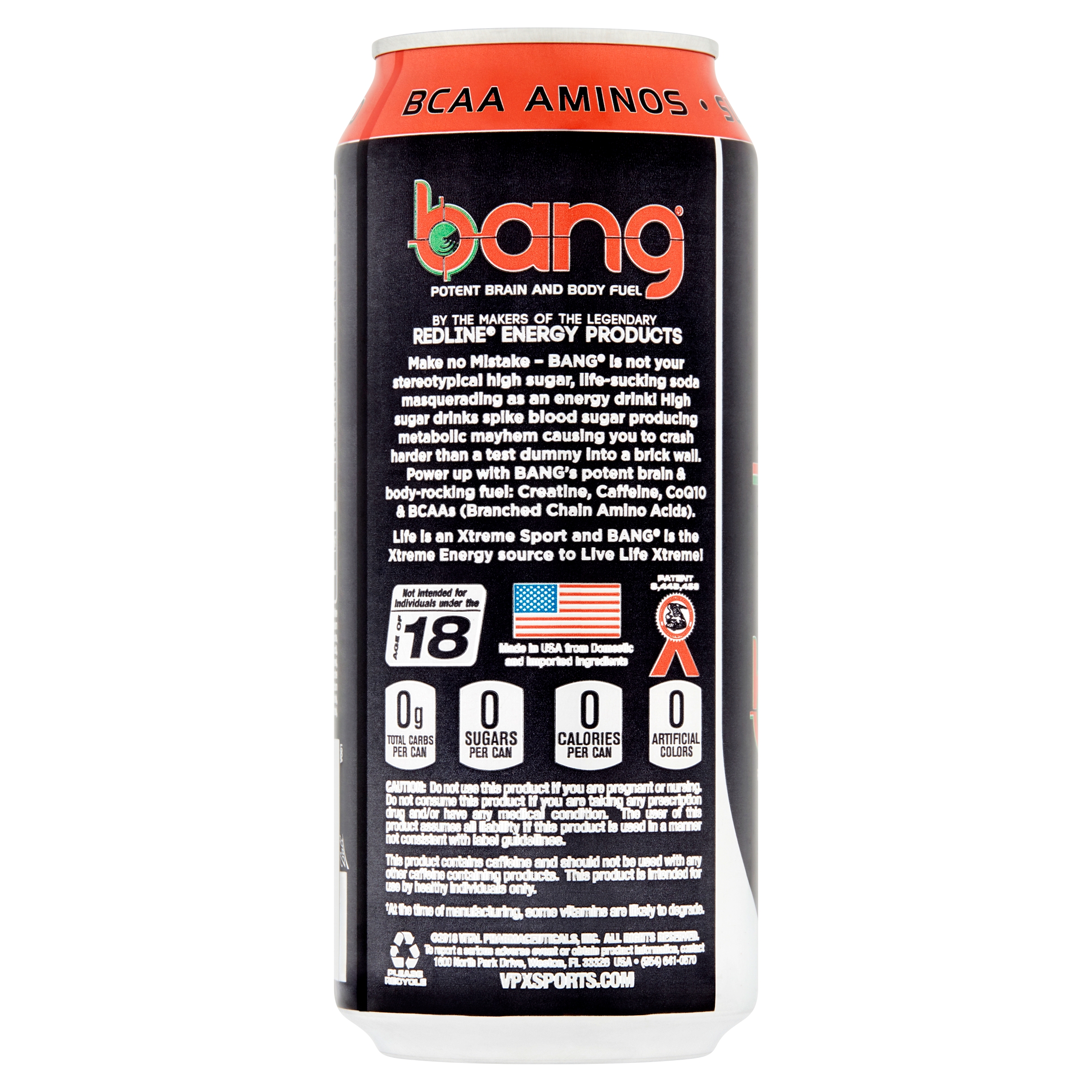 Bang energy efectos secundarios. El consumo excesivo de cafeína puede conducir a efectos negativos para la salud tales como náuseas alteraciones del sueño problemas cardiovasculares y nerviosismo. Problemas de ira y cambios de humor. Power up with potent brain body-rocking fuel.
