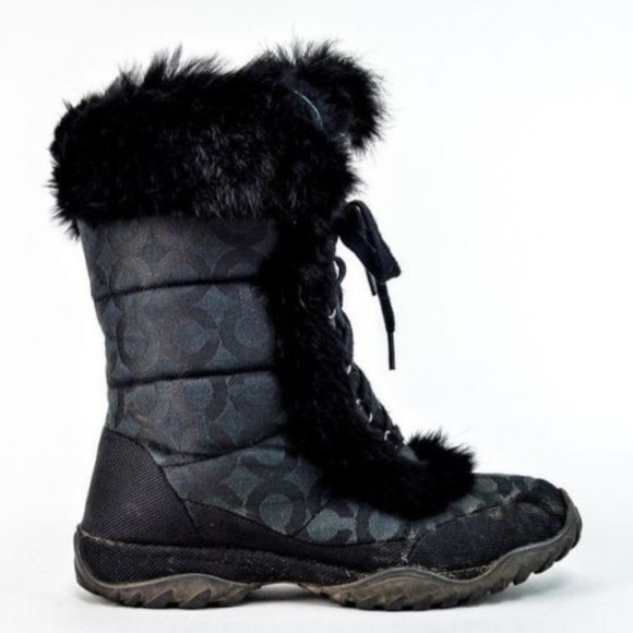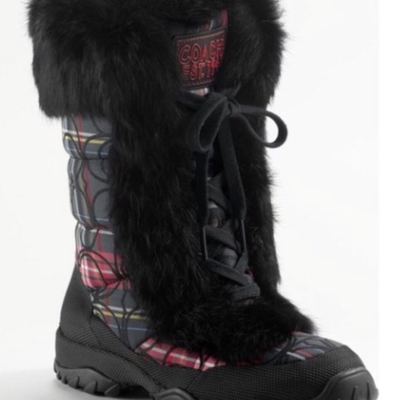 Shop Womens Coach Tan Brown Size 55 Winter Rain Boots at a discounted price at Poshmark. Size 8 Multicolored plaid with black shimmery coach signature C pattern Genuine rabbit fur Shoelace ties up the middle of the boots Grooved thick rubber soles Shop with confidence here as Ive been an online seller for. Never Worn- Vintage Coach Jessica Suede Fur Tall High Heeled Boots wBuckles.