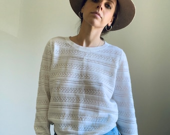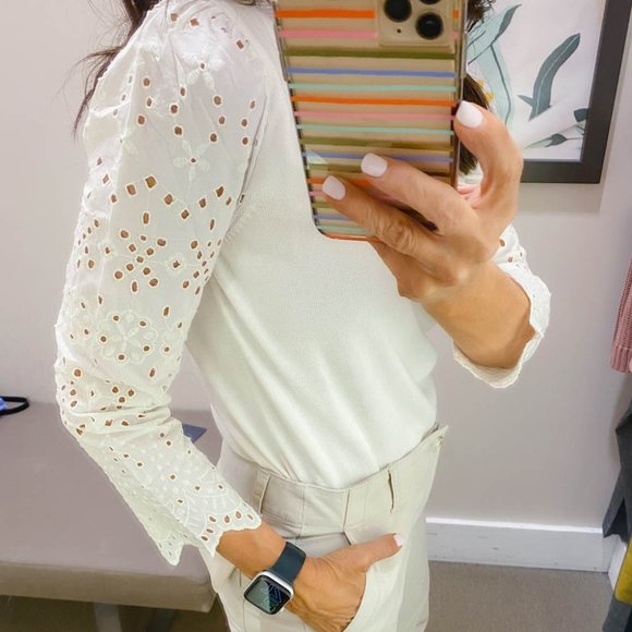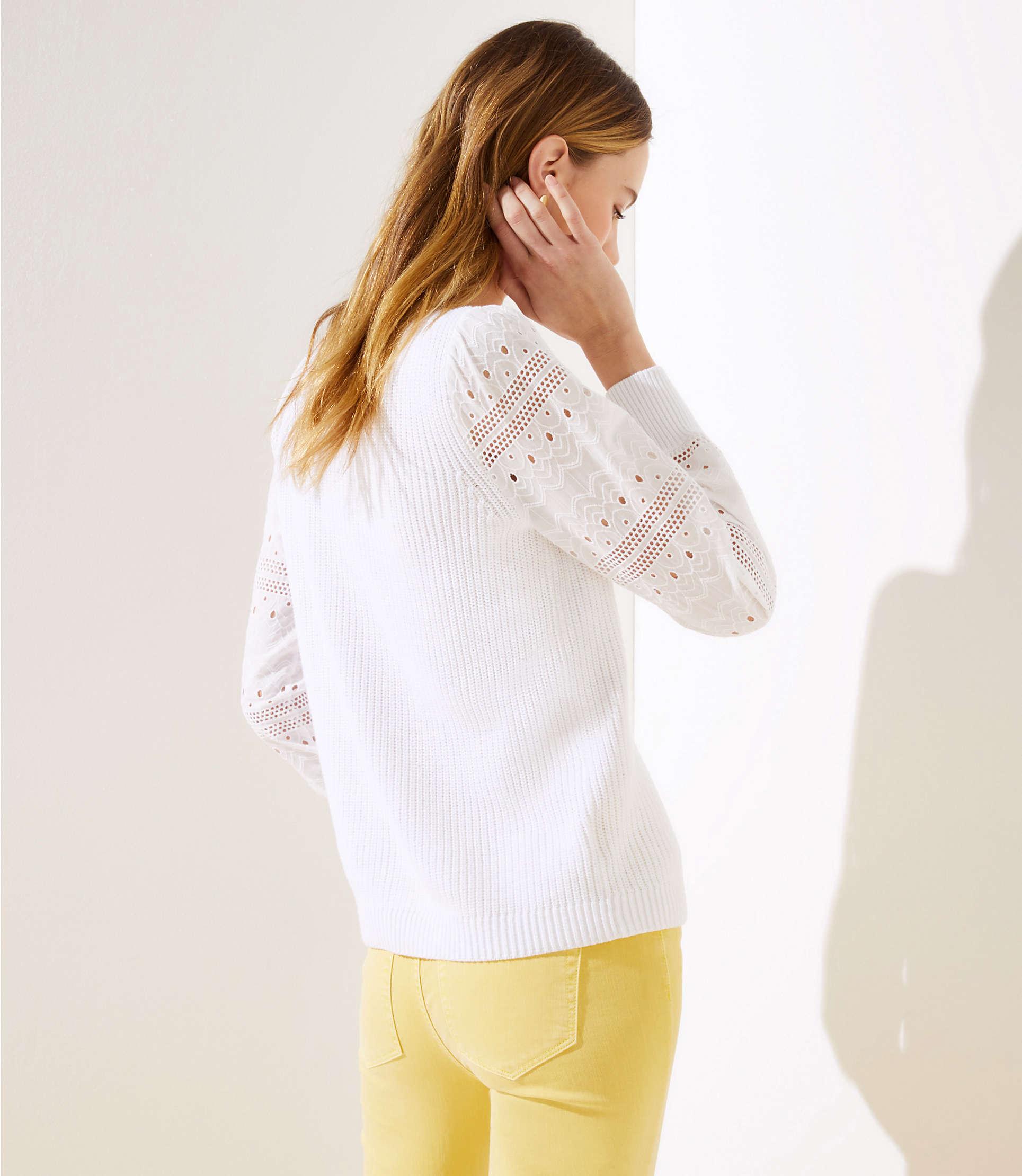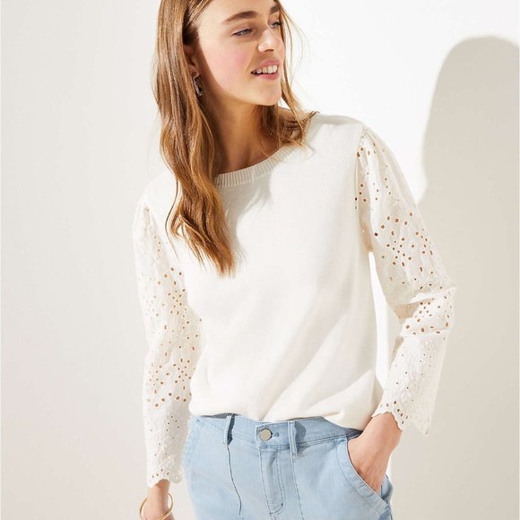 Eyelet mixed media sweater. Our refined sweater is cleverly constructed with a woven eyelet hem for a stylish layered effect. Similar products also available. Shop Womens LOFT White Cream Size XL Crew Scoop Necks at a discounted price at Poshmark.