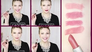Mac midimauve swatch. MAC Bombshell lipstick Swatch. Check Vanity for Dupes. Mac Lush Amber Lipstick Swatch.