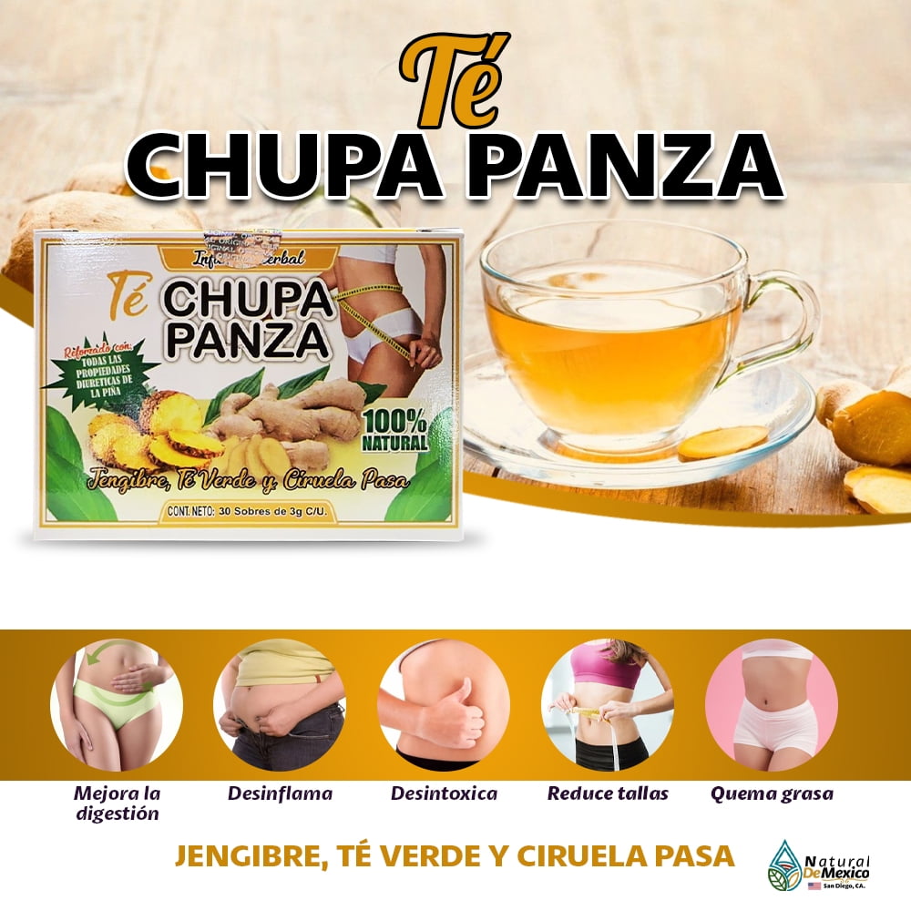 El té chupa panza está compuesto de ingrediente naturales como son. Tus datos están protegidos tienda certificada con SSL. La espirulina se utiliza para equilibrar los niveles de colesterol además de que regula la hipertensión y también actúa ante la diabetes. Ingredientes del té chupa panza. Corteza de las ramas tiernas de canela. Los chupapanzas son varios tipos de productos que sirven para quemar la grasa de más que tenemos en el cuerpo así como ayudar a nuestro sistema digestivo a incorporar mejor los nutrientes pues mejora el metabolismo. Finalmente el ácido carbólico se utiliza como exfoliante. Pulpa de piña 3. Raìz de jengibre 2.